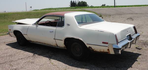 I realized it after I pulled it out to clean it up to sell it that I haven't drove this on the road for 10 years, boy time flies! It's going to need a complete redo, or a fair amount of work to be a driver. There is rust but it not to the point of falling apart or gaping holes. The rear bumper is good! the quarter panels will need patches, not total replacement. The windshield got broke this past winter, a branch fell on it. I replaced the vinyl top when I was driving it years ago but it needs to be replaced again (it is fine for a driver). It does run and drive but it's not drivable because the brakes want to hold down. It still has a functioning LeanBurn system. I disconnected the fuel tank because I'm sure that the gas that was left in there is really bad, I have a gallon can hooked up under the hood for now. I threw the carpet away, it was bad and the mice made it worse.