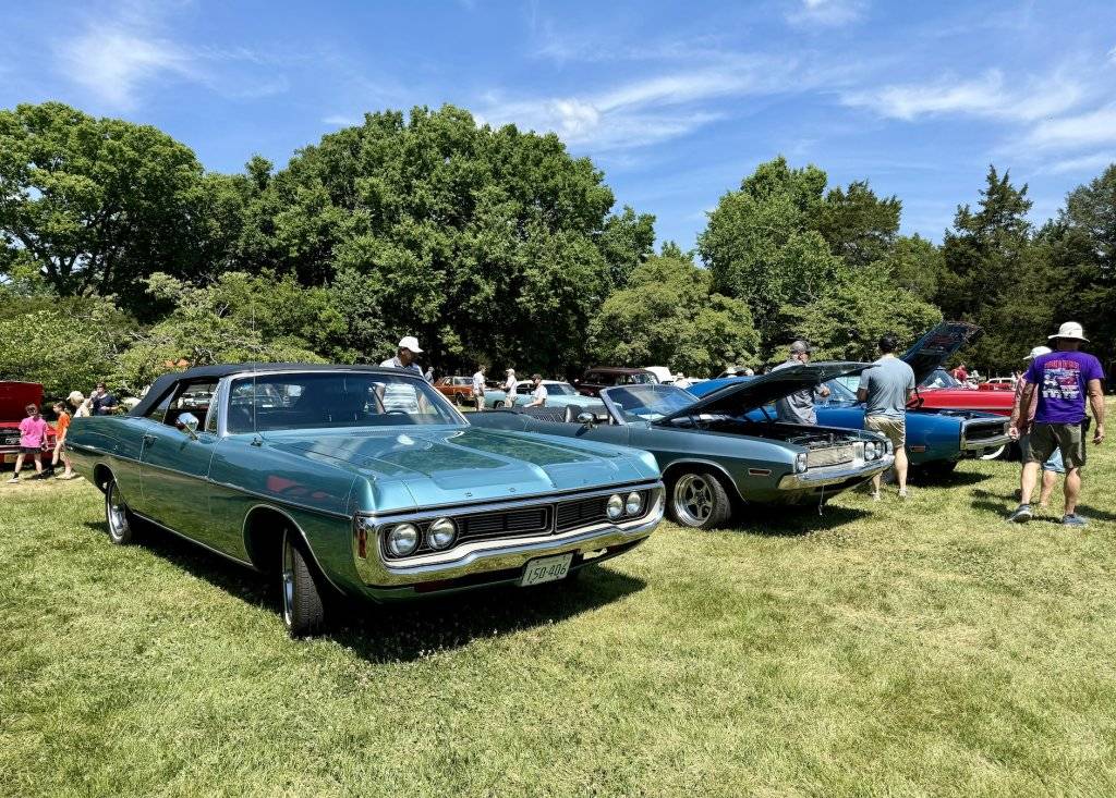I brought Regina FQ3, my turquoise 1970 'vert. @Imperialist67 rode with me, as the car he'd planned on bringing had transmission issues (hopefully, it will be ready in time for Carlisle). As in past years, I met @73MFImperial and his wife: they brought their 1973 Imperial and 1977 Cordoba -- it was great to see them and to meet their family. @Analog Kid brought his 1972 Fury iii hardtop, and most of his family was there as well. @ravenscat brought his white 1969 Newport convertible, but he arrived after the main entrance cutoff and so was not allowed to park with other Mopars -- it is unfortunate that his car was sent to the overflow area, as there was some space left in the Mopar section. @Copper1982 was also at the show, but with a VW and I did not have a chance to meet him -- Mike did, though. @Ripinator had hoped to make it but could not.
