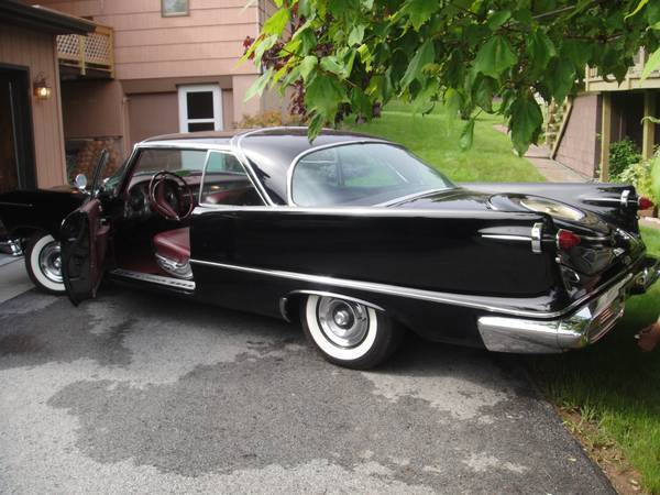 Beautiful Imperial! a black 2 door with red leather interior, only way this could be better is if it was a '58 instead