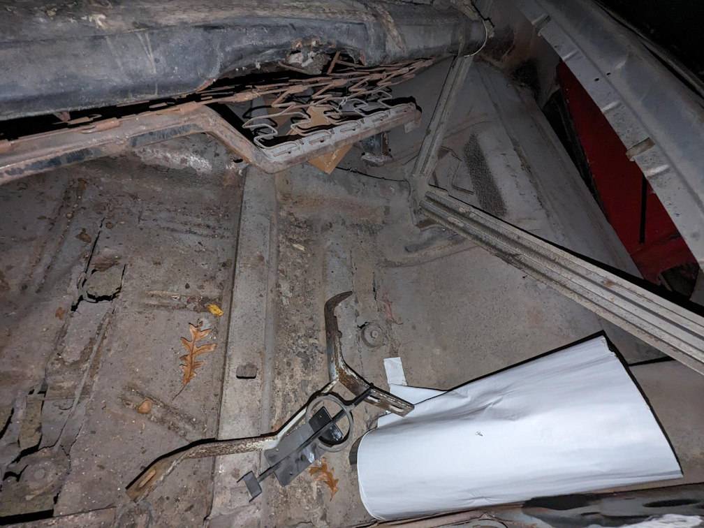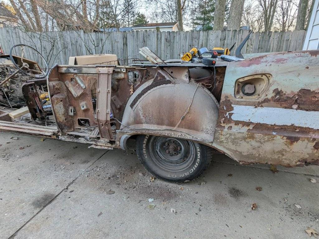 Cutting the donor roof off the rusty original 2dr ht Belvedere...