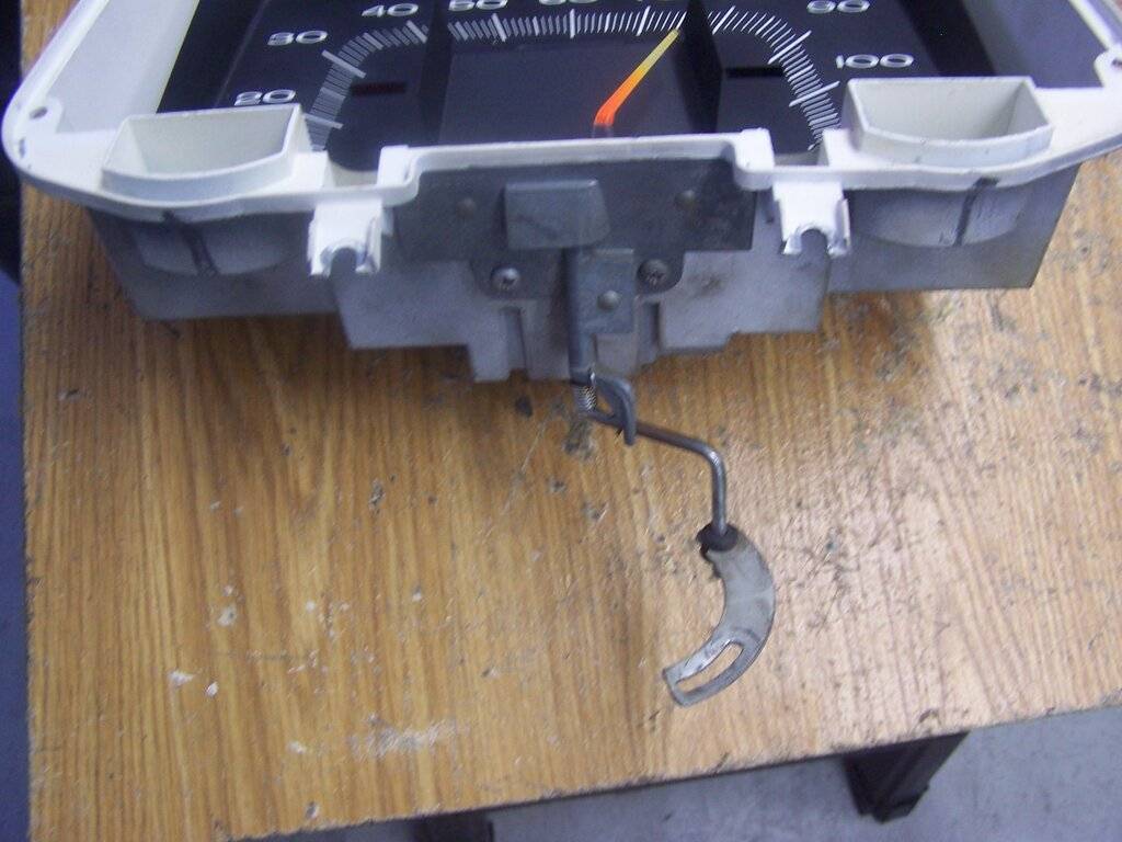 It has been a long time since I have taken my speedo assembly out. But you may have to drop the steering column down. For sure, you will have to disconnect the speedo cable from up under the dash. I know there are two screws at the top of the bezel you have to remove and a couple at the bottom. Anyway, you said the shift indicator doesn't move so something has become unhooked from the shifter. Here are a couple pictures of a speedo cluster I have that has the hardware that hooks onto the shifter assembly. Once you get it out, you will see what is broken or missing. Shouldn't be too tough of a job. Let me know if you need any of these parts. You may be able to drop the steering column and not have to take the speedo cluster out if you can get to the two screws that hold the shifter indicator in.
