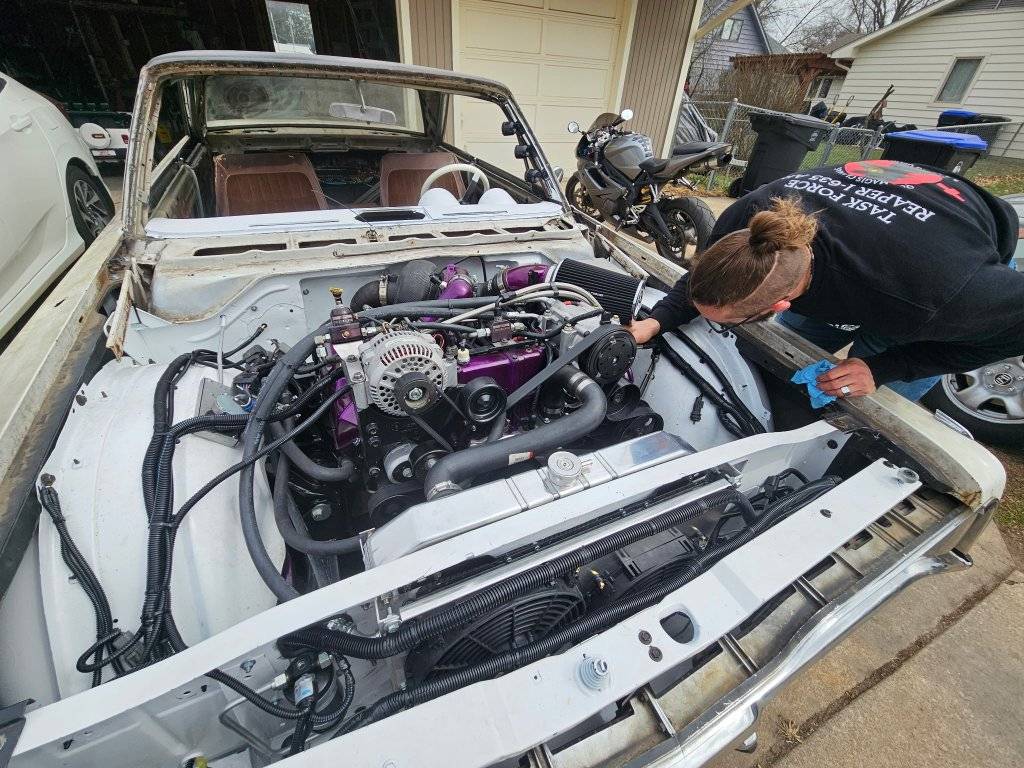 For the wiring cleanup, I had to pull the trans to PCM harness so that I could shorten it up a couple feet, and I also had to shorten the speedo wires by several feet. Turns out the donor truck was substantially longer in the wheelbase than my Cbody lol who’d’ve thunk it? I also focused on trying to clean up/conceal all the wiring under the hood, and while I don’t have many pictures of the final result, you can somewhat see the results in the picture with the back of my ugly mug in it. Still chaotic, but is organized chaos lol