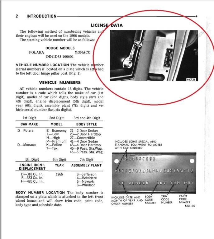 66 Polara 500 VIN location?