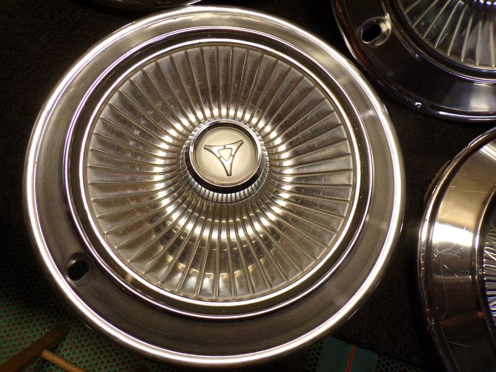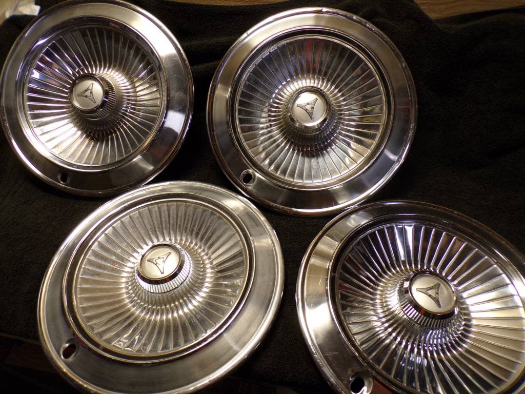 Set of nice hubcaps, came off buddy's "500" hardtop. Same as on our '65 "880" only difference, these have white centers where the "880" are red(will be posting them later). They have some scratches(may polish out?), one has several small dings, and one does not have the black stripe. $80 plus shipping