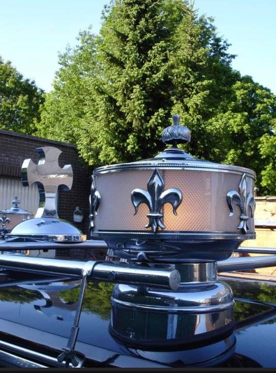 Ummm I'm not sure about Belgium but in the UK especially Ireland the grab rails are for (I guess) the pall bearers to hold on and walk along with the slow moving hearse I guess to feel attached to the deceased(?)Weird. Is all that on the roof for displaying the coffin on the roof? What's with the long grab irons on the sides and rear?
