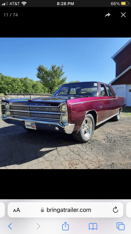 Our purple ‘67 Fury III 4-door sedan that is currently up on bringatrailer is ending in 3 hours and 54 minutes with a current bid of $4,500.