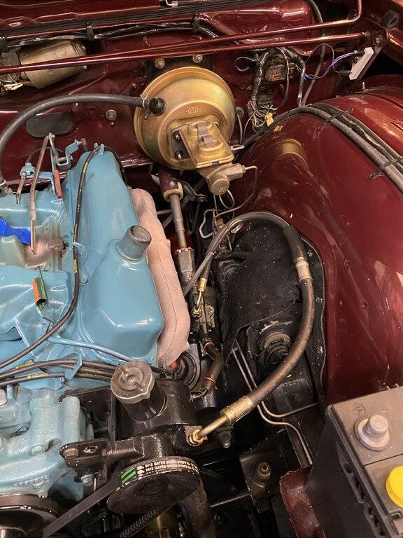 My desire for perfection struck again. This time the power steering hose wasn’t quite right. I had a good routing that ran under the battery tray and back up to the pump. The problem is I kept seeing original pictures where it went towards the brake booster then looped around on the inner fender. I looked up the part number and started googling. It seems mine was a little different than the original p/n. It had a longer metal end on the gear side and was a little longer overall. So I found an NOS one on eBay and ordered it.