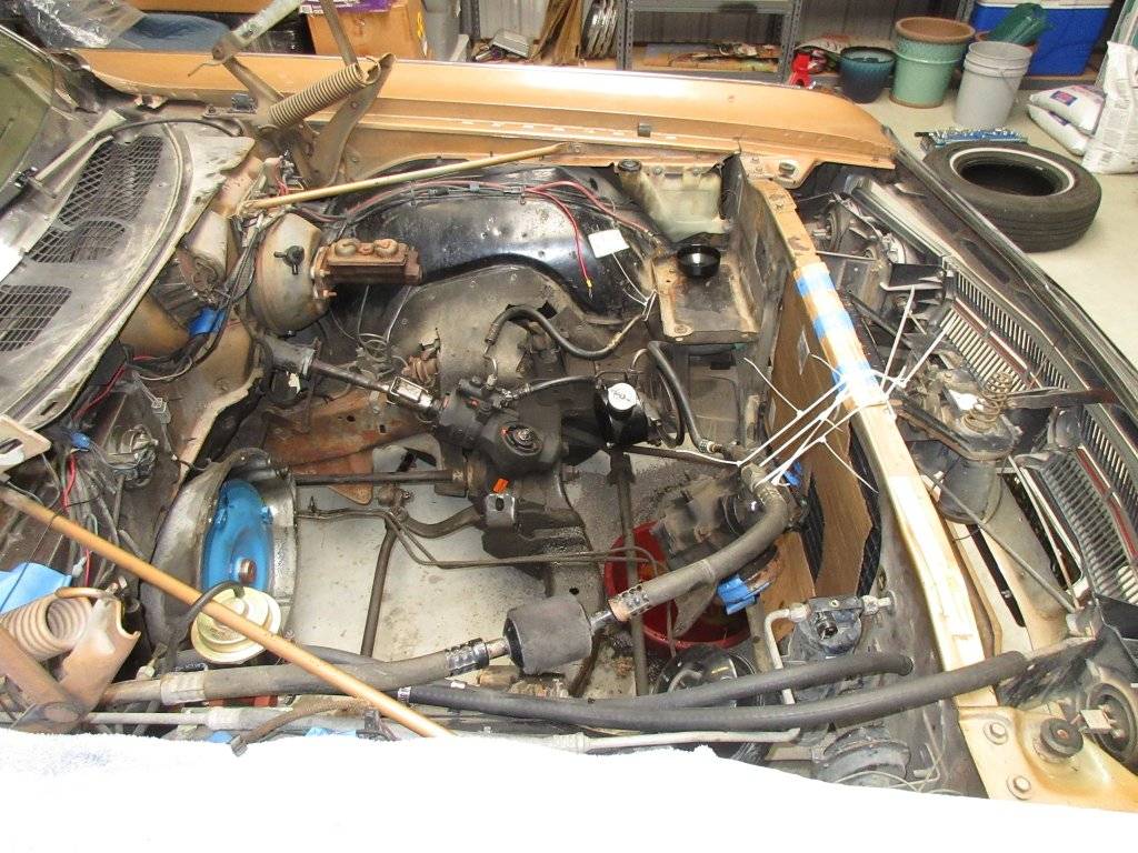 When we did the '70 Superbird full restoration, the completed body was on a body-contact lift. The engine/trans/k-frame assy was raised to the body, then attached with self-centering bolts (which were the orig bolts!). NO problems. NO underhood paint scrathes, either! Then the completed instrument panel assy was walked-through the bare interior. Several bolts installed, then tightened. DONE . . . other than all of the hook-ups and such. Then the steering column and related items. Finally, the glass guys came and did the windshield. It was amazine how things seemed to fall into place!