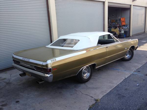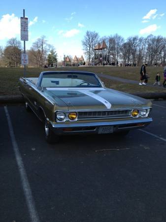 Hello craigslist up for your consideration a very rare numbers matching1969 Plymouth Sport Fury convertible big block, 383 air car with original special order paint. The car has brand new dual exhaust from the manifolds to the tips in the back. Newer tires, It also has big car rally wheels and a spare in the trunk. New white power top. New legendary white seats,and a new white parade boot too.New hood pins and ,new yellow high beam headlights . New breaks all around, new oil pump, new drivers side torsion bar. New lower ball joint drivers side. New shocks in the front, New air shocks in the back. New gas tank and fuel lines. Brand new power break booster. The ignition has been upgraded to an electronic ignition. Still has an original inspection sticker from 1969 on the windshield. All the chrome and bright trim is on the car complete. Car runs and drives great. Just floats down the highway. All gauges and lights function as they should, with the exception of the clock. The car comes with many spare parts. Asking $13,000. Remember it's only original once, meanig the quality survivor paint that is gold in the sunlight and brownish on overcast days and greenish at night time it is pretty cool along with its original drive train. Call me, Eddie
