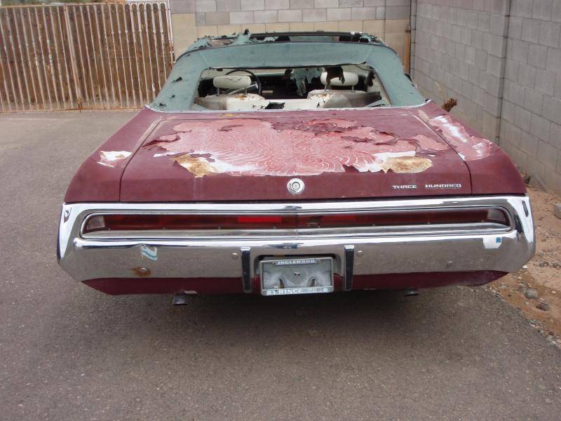 I'm going to go look at this 300 as soon as the guy gets home from work. I really don't want another project right now but it's a Fusey Convertable! Anyway it is supposedly 100% rust free and straight. Been sitting since 2009 and doesn't run but with gas battery etc, it should. The owner told me it's a column shift car. It has a propane covversion done to it and has a propane tank mounted in the trunk.Obviously it needs restoration but looks well worth doing. $4500 seems high to me considering even restored it won't be a 30 thounsand dollar car. What do you guys think it's worth? http://phoenix.craigslist.org/wvl/cto/3263733904.html