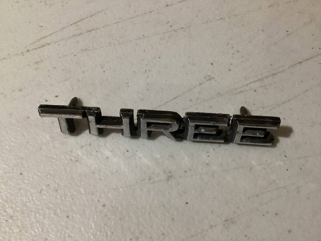 Used exterior “THREE” metal nameplate. $20.00 plus shipping from 61109. No electronic payment. Check or money order.