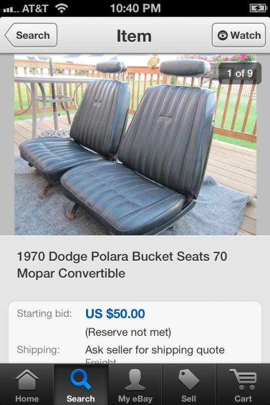 Nov 13, 2013 #1 Moparhead Member Joined Oct 8, 2013 Messages 105 Reaction score 9 Location Sunny Arizona Just saw on eBay, item number 131043510562 I image these are rare seats in case any lucky convertible owner is in need.