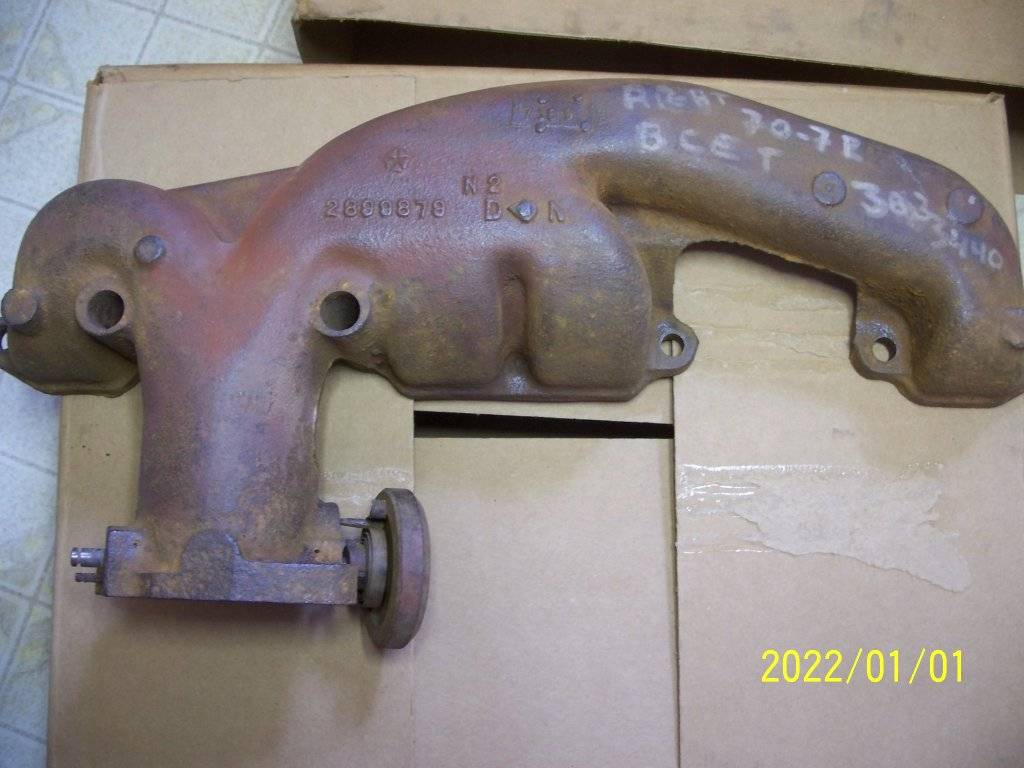 Very nice passenger side exhaust Dated 7-69 383/440 Part# 2899879. Has Heat riser shaft and spring that spins freely but has no internal butterfly. Near mint shape. $300 plus shipping.