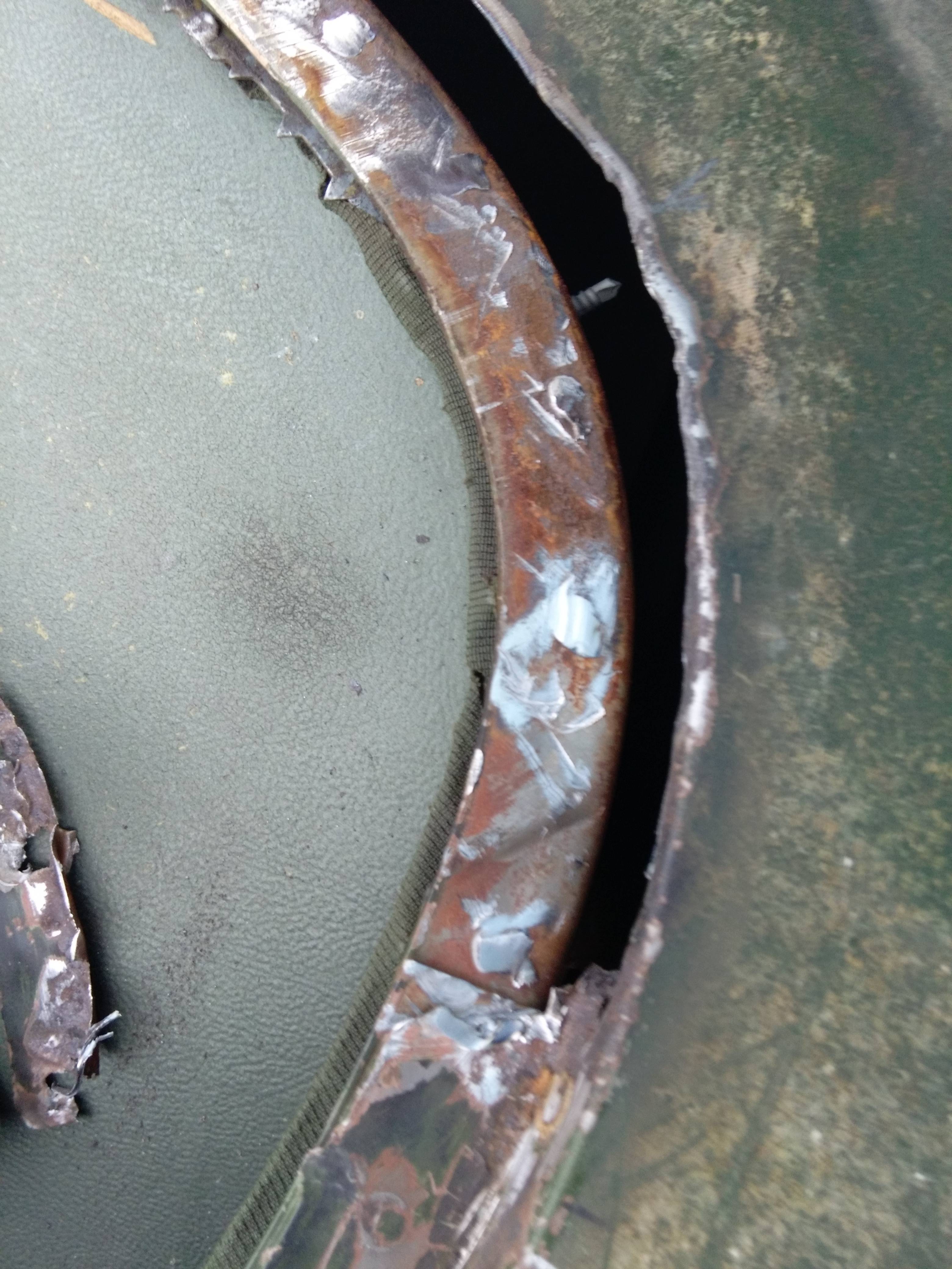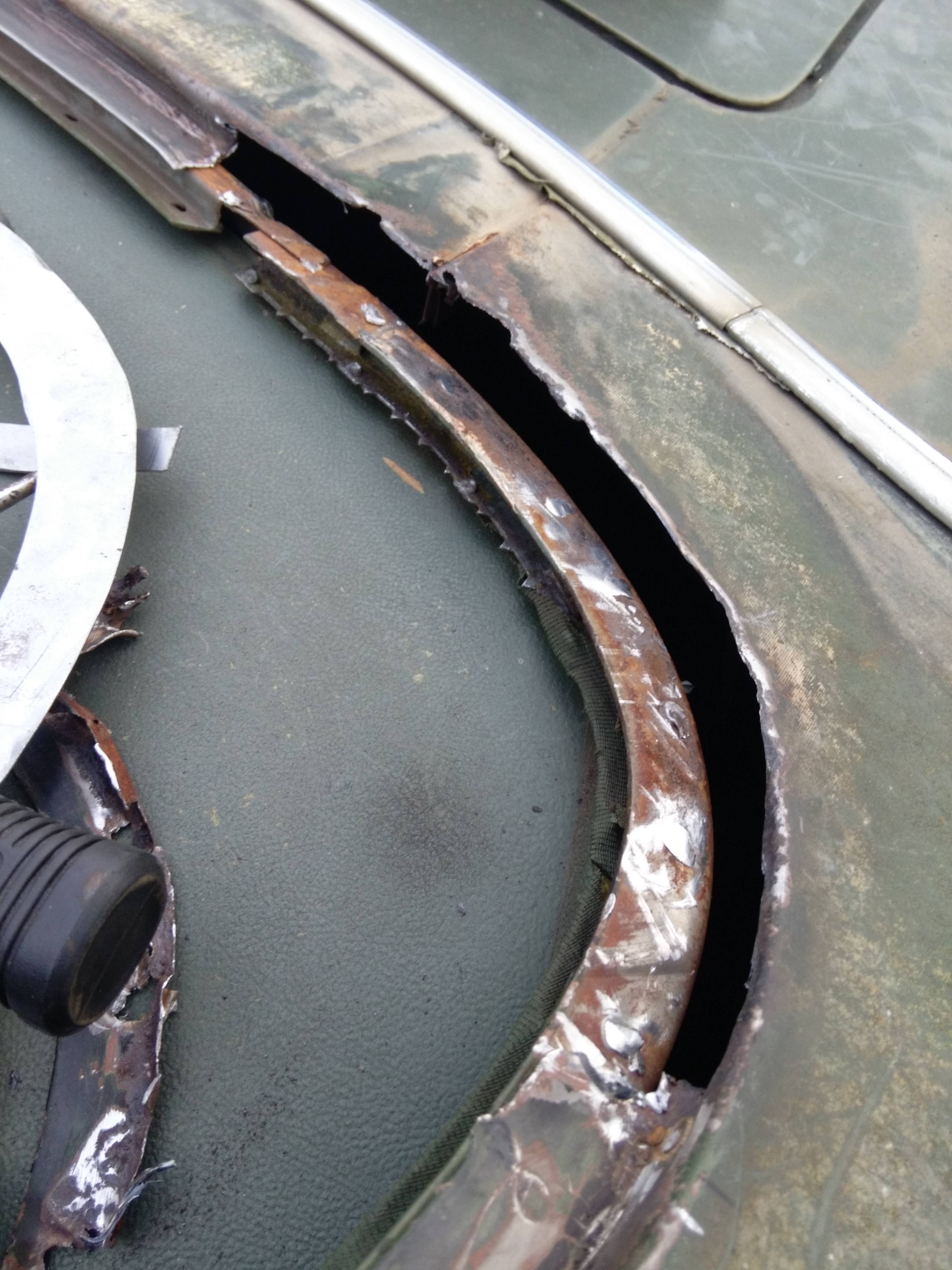 I first figured out what I needed to cut. Since there are two layers of metal that make up the small strip sections where the window rests and by the grace of god, mine were only rusted thru to the first layer, I decided to just remove the first layer and replace it with good steel.