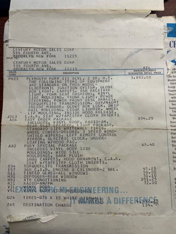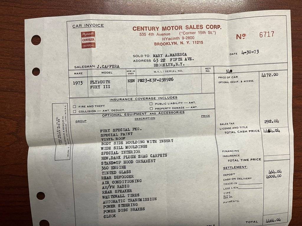 Good morning gents , just purchased a 72 Newyorker and a 73 fury . I had to grab them before some non C-body person got to them , They have been sitting for 25 years and of course no keys! My question is is that i have the original dealer invoices for these cars .The new yorker has the key codes on the invoice the fury does not. Can i get the keys cut for the New yorker cut from a lock smith with the codes? I have to get them on dollies just to get them on a flat bed without . The fury is eay to load but the newyorker is in the corner of the garage anf it would be a heck of alot easier if i could steer it out ! I have to move thses after the big snow we are having today and tomorrow so Tuesdays the day any advice would help. I have 4 c bodies so i dont know what im going to do with these .The newyorker is near mint only option is A/C has a 440 sure grip 99000 miles and is straight as an arrow . The fury has quarter rust and some dents and has a 360 with A/C . Im hauling these out of NYC . The C-body disease is alive and well in