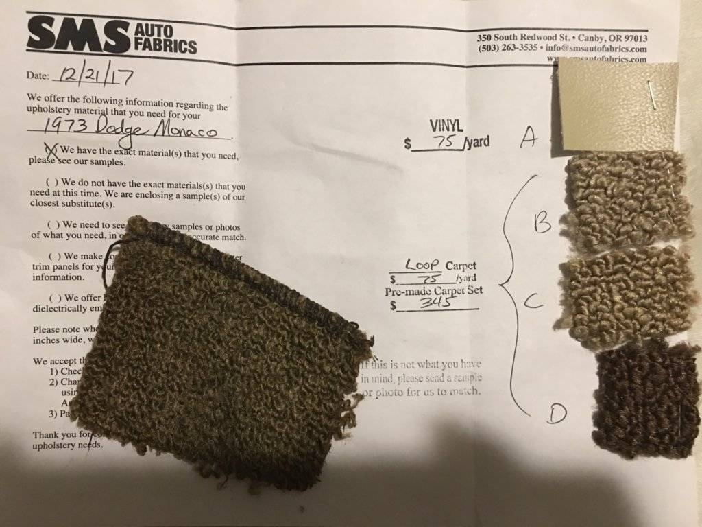 Regarding your carpet, Stock Interiors will be selling you an ACC carpet. From what I've read, all the auto carpets are coming from the same supplier so SMS and ACC are using the same materials. The question would be if SMS has the molds to form the carpet or if they are just selling formed carpet made by ACC.