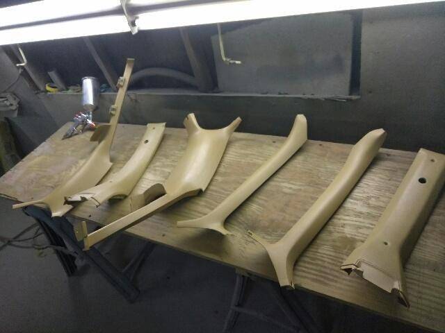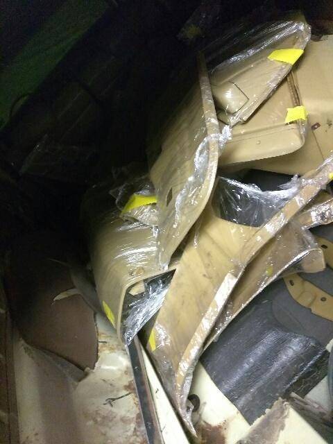 Here are the interior vinyl pieces, painted and then carefully wrapped and packed back in the car.