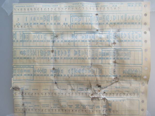 Well got around to pulling the back seat out and found the BS and a spare set of front bumper signal light lenses tucked behind the seat. Odd thing is the car should be Turbine Bronze yet it's painted the same metalic brown inside under carpet and seats as outside, it must have been a total redo somewhere around 1979 according to the newsprint under the back seat, all soaked in oil or something.