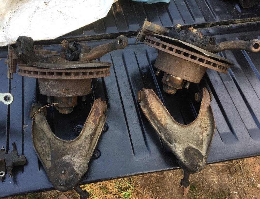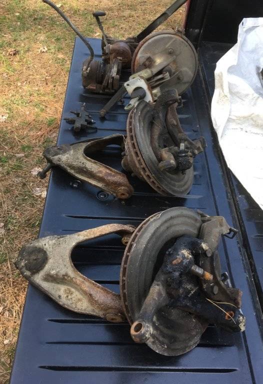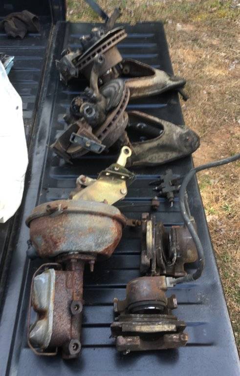 These parts where pulled from a 75 Dodge Dart A body car. This is the big bolt pattern 5 on 5 1/2. This is what you need if you want to put factory disc brakes on you drum brake A body car. These parts are quite heavy so I can ship these in a crate via Fastenal. Obviously you will need to replace the lower ball joints & rubber brake lines. $400 plus the shipping which you pay directly to Fastenal.