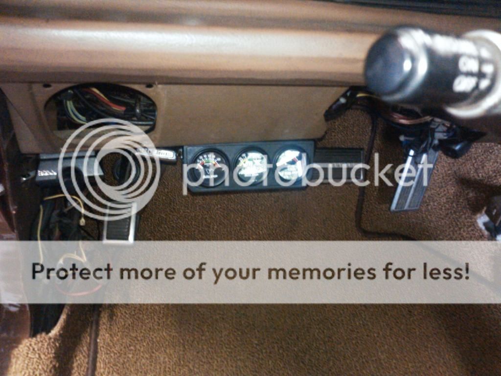 My personal plan is to either install an oil pressure gauge and a temperature gauge in my custom built console or, if the gauges are small enough that I won't have to cut my dash, install them in a homemade "delete plate" where my AM radio used to be. I have a stereo head unit that is a little too large to fit in the radio opening, so it will go in my console too.