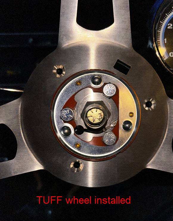 The TUFF wheel mounts fine, except that the steering wheel is not locked to the column so it can travel up and down while you are driving. This proves to be a bit distracting. I looked at the parts I have from the original wheel to try to see if there was a way I can just lock the wheel in place. There is one bolt in the center of the steering wheel, and I did put a bolt there, but it had no effect on locking the wheel - so I am wondering if I am missing a part somewhere.