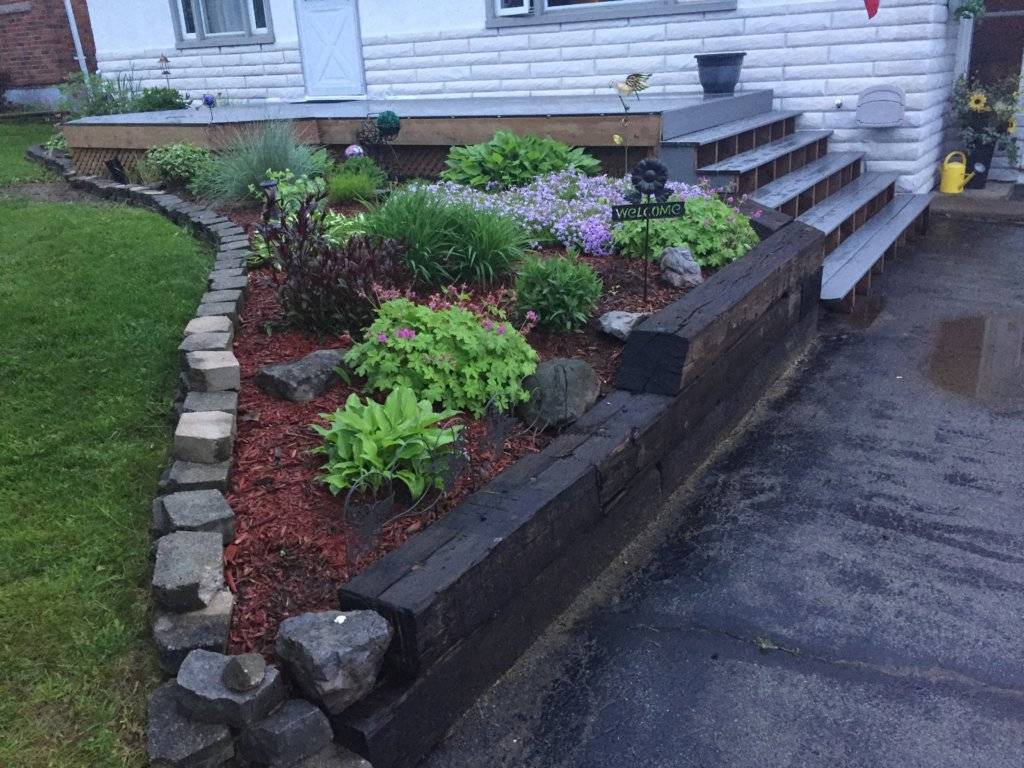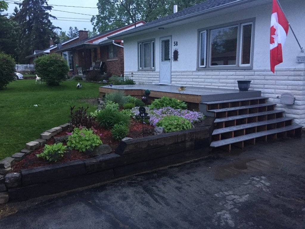 The deck is near the max height that meets local code but we are going to add a railing for additional safety for any drunken friends that may be inclined to take an unplanned step off the top into my wife’s garden