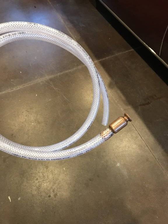 Set the gas can in the trunk, put the copper end in the jug, hose in tank, shake the hose about 10 times. Once the siphon is going it doesn’t take long to empty.