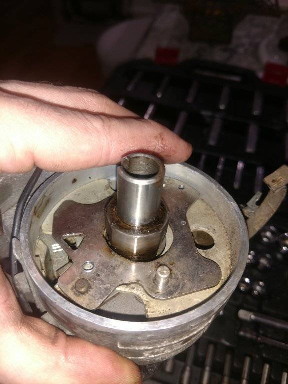 Pulled the points, they looked pretty worn so I replaced them and went to set the gap and I couldn't for the life of me set the gap. I tried and tried to get even the slightest gap but I couldn't. I even resorted to pulling the distributor from the car so I could freely spin the shaft to see if the points even opened with them set all the way closed. Nope, no gap.