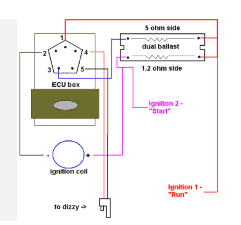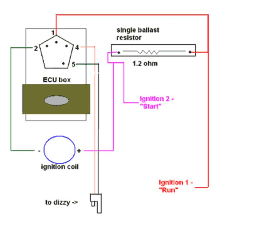 When electronic ignition started in 1971 as an option and 1972 as standard they had a dual ballast, 1.2 ohm side for coil, 5 ohm side for 5 pin ECU.