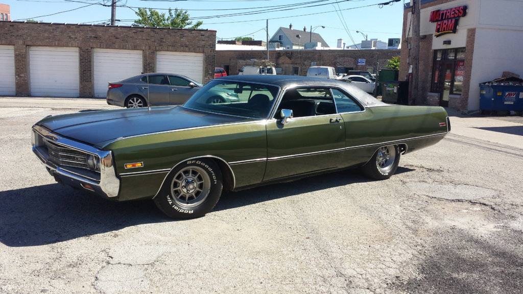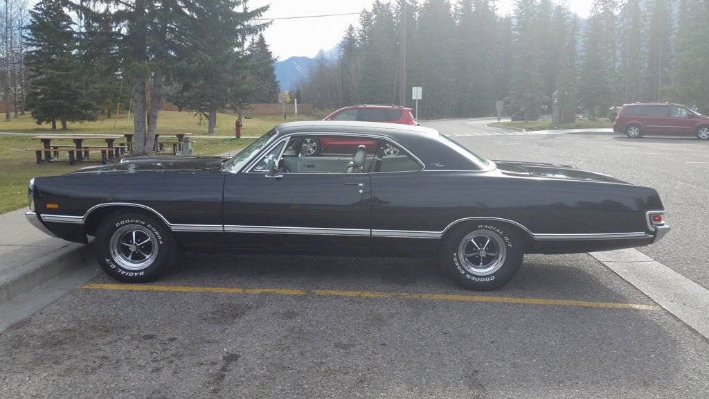 I would suggest that you use those mopar rims you have and place on the rear 255/70R15 and on the front I would go with 235/70R15 this gives you just over an inch height difference(total diamenter) on the rear vs the front. You could also go with 225/70R15 on the front that is another half inch front drop but a 225/70 might be to small looking (IMO) for a full sized fusie. You could also and 1 extra leaf spring on both sides with the cargo shocks(coil-over) this combo will give you an inch and a half alone. A slight rake is fine for a c-bodie (IMO) but only 1"-2" max but what ever floats your land yacht. I will include a couple of pics of a 69 Monaco with 255/70's on the rear and 235/70's up front and a 71 New Yorker with the added leafs and coil overs shocks. Tires on the 71 are 235/75 out back and 225/75 up front. Slight rake only. Torsion bars can be adjusted also for height but you might be playing with havoc on your front end components..you could also get rear air-shocks if you want to really raise the rear if you were to go with 10' rims out back you would have to go with sir shocks to clear the fender lips but that kills your comfort and ruins the look (IMO)