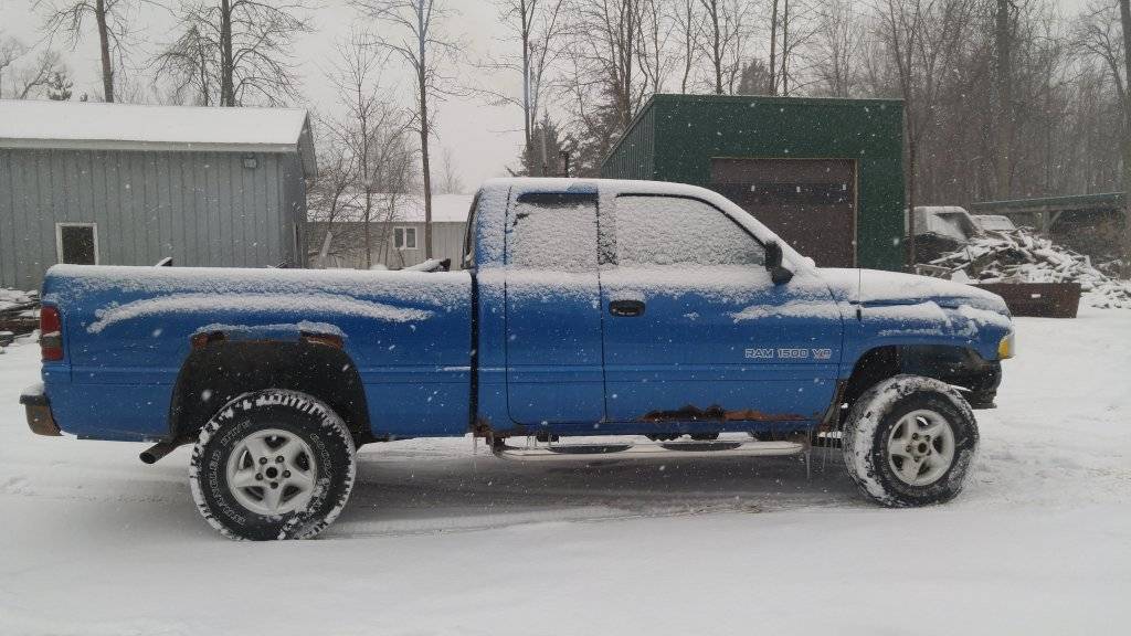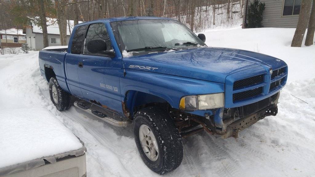 I bought this one this morning. Most I looked at were high mileage, rusty. With 318s and they still wanted $2000-$3000......I bought this one for $400 off the original owner.....it has the 5.9L and 135xxx kms. It's the "Intense blue" and a Sport package....two things that I began to fall in love with during my search....