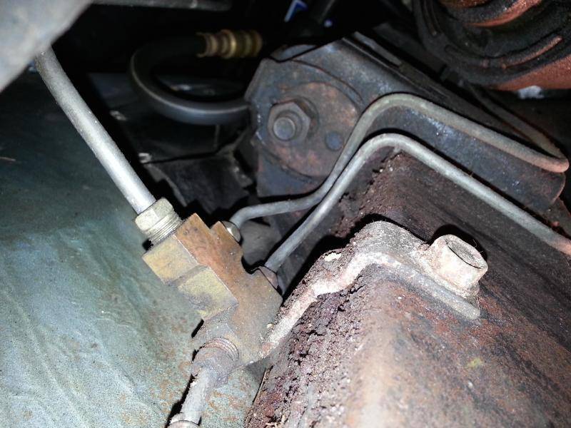Looking over your photos and description I assume your car originally came with Power Brakes, Single Master Cylinder, Single Distribution Block (like my attached photo) and drum/drum brakes.
