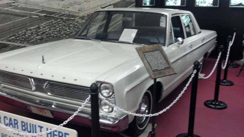 Many of you probably know that if you have a letter D as the seventh digit in your VIN number that you have a 66 thru 77 Dodge or Plymouth full size model made in Belvidere IL. Well, in down town Belvidere we have a History Museum. Inside is a brand new 66 Fury II that was used and built by the engineers to set up the assembly line process. I believe the car has about 13 miles on the odometer. It by means in not perfect. you can see where they used too rough a grit sandpaper on the leaded seams in the C pillar and some paint blemishes. They used to bring it out on car show day, but the museum has been under construction with an addition being added. So I apologize for the OK pics. When Im over there again Ill take better pictures with a better camera.