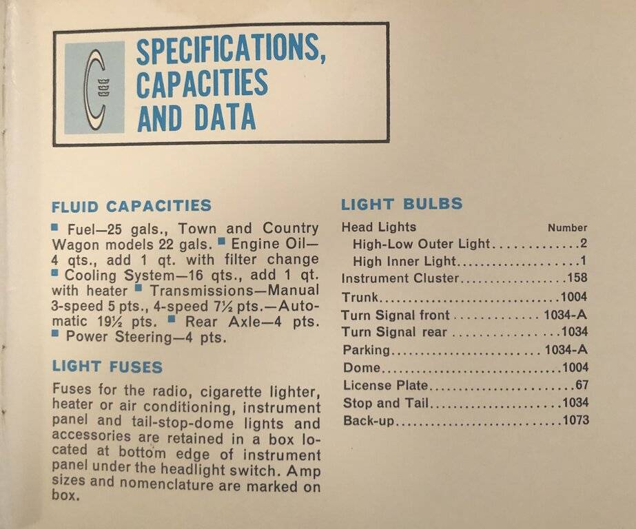 Is there a resource anywhere with all of the bulb types used throughout the car? I have a 65 New Yorker and want to upgrade the blinkers and tails to LED for better visibility to other drivers.