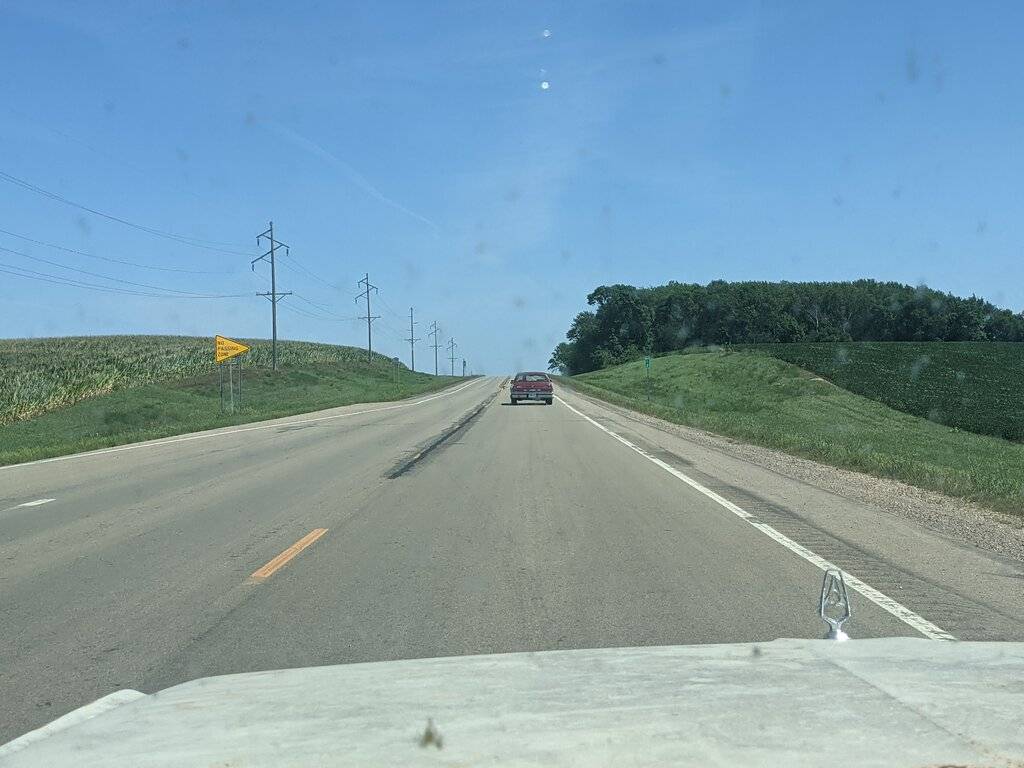 I'd rather see the whole car, than see what you're looking at while driving. Can we get a shot of your car to look at?I drove through Illinois and Indiana on what turns out to have been the last nice day of a beautiful fall week, and I visited @david hill on the way. Here are photos taken from my car in Illinois and Indiana -- yes, it is David's superb, numbers-matching 1969 Chrysler 300 convertible in front.