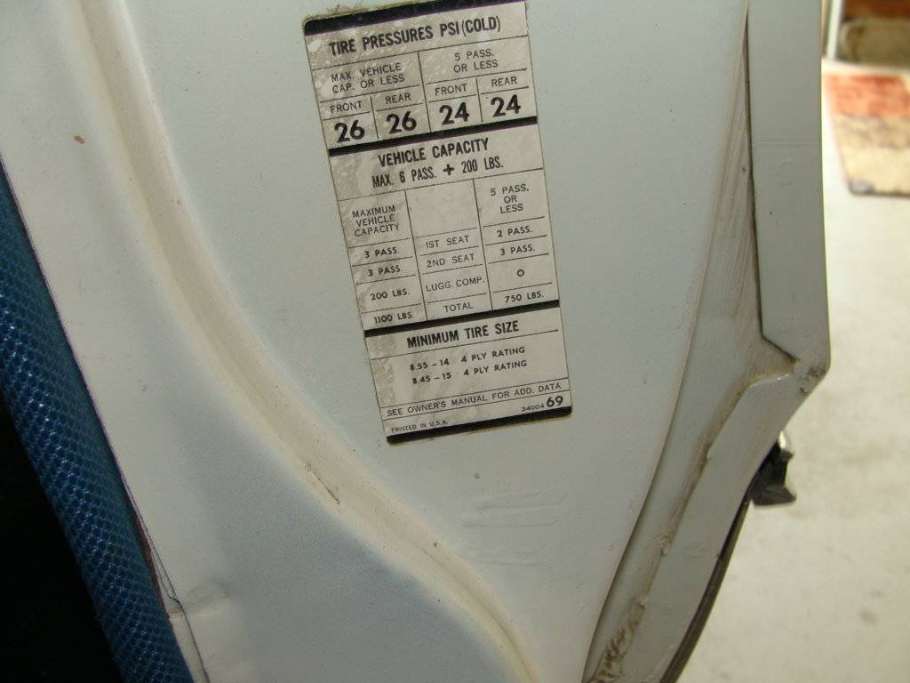 In that orientation, ALL of the available tire sizes would not need to be listed, just the smallest standard size on that platform of vehicle (to support the weight of the vehicle with good reliability and durability). Station wagons and their different tire capacity needs might have a decal specific to them?