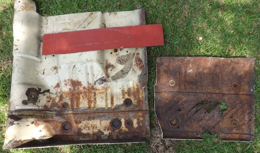 I got lost.So after running around and picking up some supplies I got stuck into the floor of the car today, I cut the passenger rear footwell out and lay it beside the replacement unit, you will see that they are two different sizes going by the seam line. To make it all match up I cut a spacer, the red piece you see, which will be formed to fit the new floor pan once I trim it and drill out the spot welds on the seam. Stay tuned for more pics tomorrow.