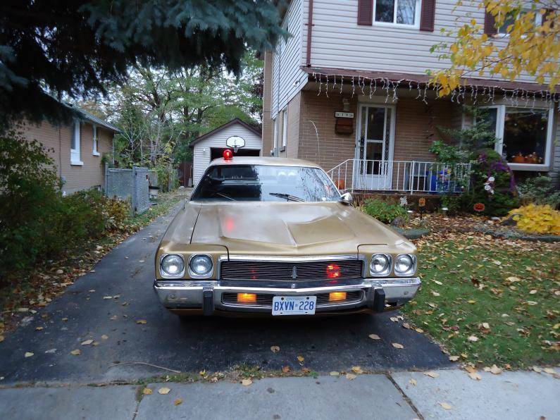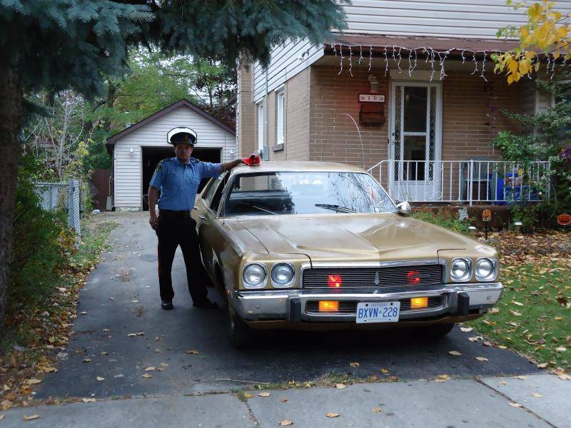 Thanks, the whole uniform is the real deal and of the era, the mrs. was working on making calls for work inside, I took the liberty of carving the pumpkins to my liking LOLI like the costume, the pic's of the car and the pumpkins