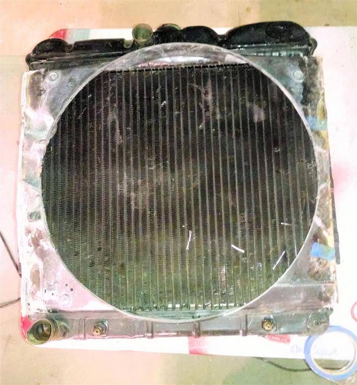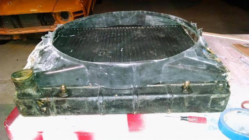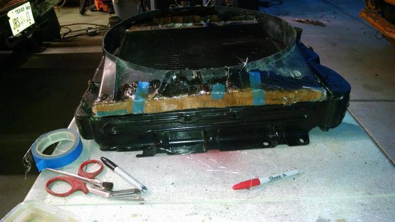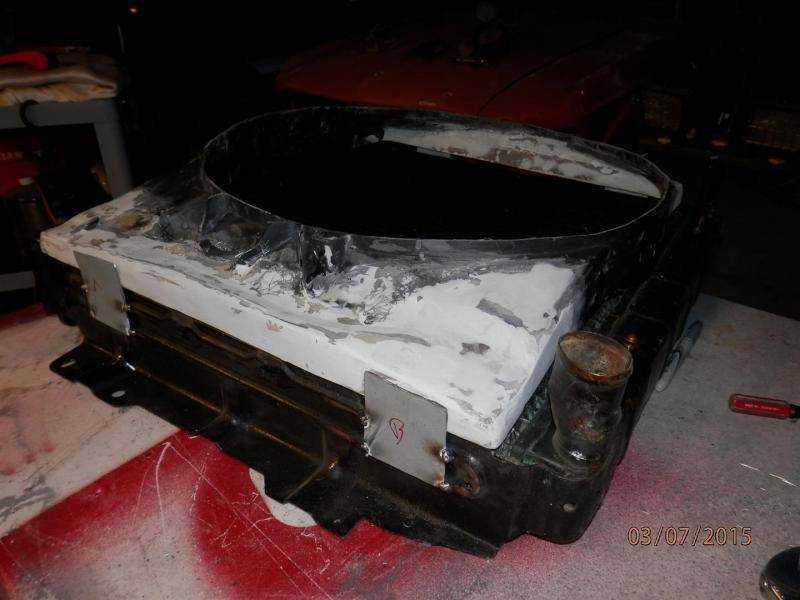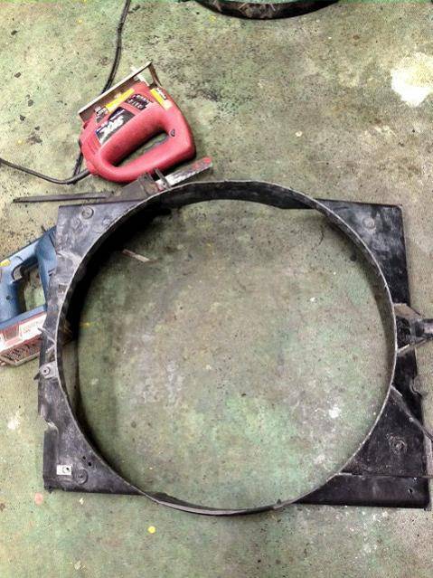 Since these are not just laying around and are expensive when you find one, I decided to "fab" one myself. There are a couple links where guys made one from scratch, which was my 1st idea, but while walking around the pick-n-pull with my buddy this weekend, I came across this one out of a Lincoln, don't even remember what year, I'll find out next time I go back. Anyway, so far all I have done is just cut it up, the diameter is a tad big, but I can live with that, a little fiberglass here and there, may have to fab a bracket or 2, but think it will be just what I needed, especially when it starts heating up down here in South Texas....so far I've got $11.45 in it. :icon_biggrin: