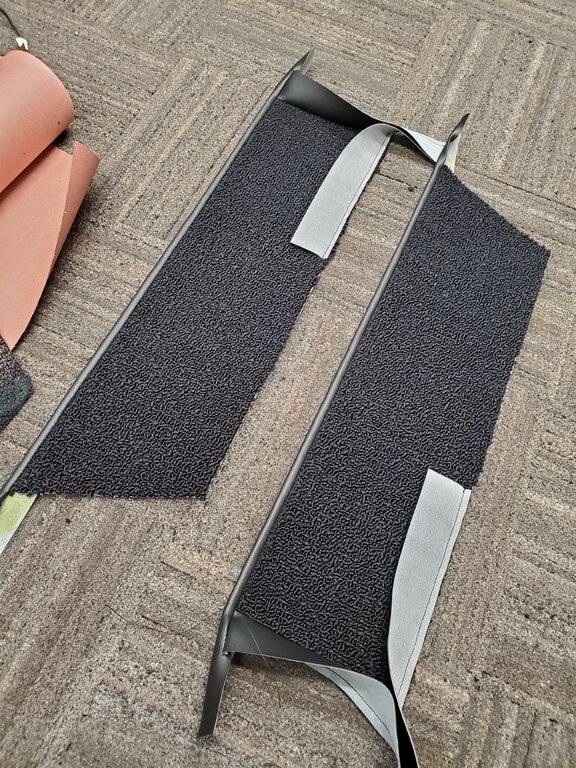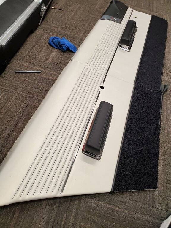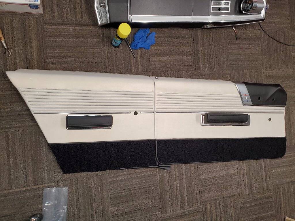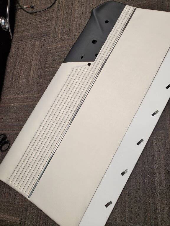 I've been working on redoing my interior panels in my 66 300. Today I was able to finish up both drivers side and the rear passenger side. The white pearl vinyl I bought from Legendary so it would match the seat covers I have on order.