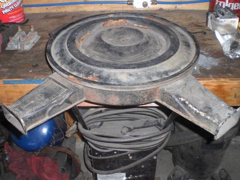 Dual snorkel air cleaner. Closely resembles 69 - 70 B Body aircleaner. This one is from a motorhome and looks the parts except it does not have the vacuum doors in the snorkels. It needs painted and is very solid. Only rust on it is surface rust.