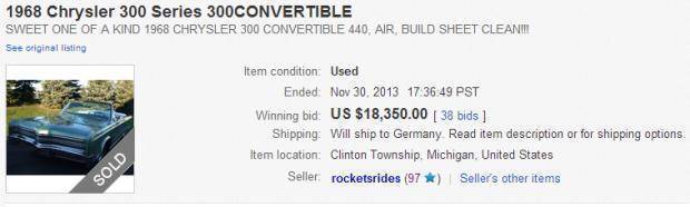 Stan, you kill me! Every hilarious comment you made is true! This is definitely the car that I sold to Don on 10/11/13. He knows fully well that it's not a TNT and that the seats have been recovered. Note that the rear seat emblems are missing! Whoever"wins" this car is going to be disappointed when they find the hack-job repair to the driver's quarter panel, since the Texan replacement quarter is still in my garage! Anybody want to buy a rust free left full hardtop quarter with complete wheelhouse and trunk extension, etc?