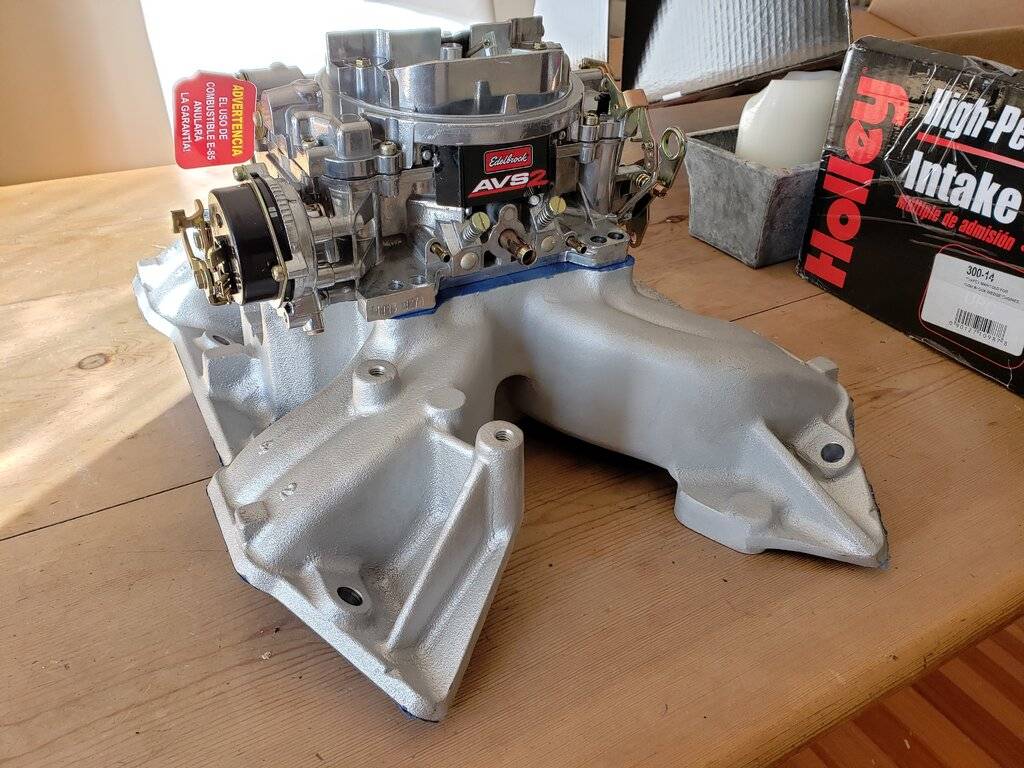 I went with after much deliberation on my engine build which includes being able to use my stock dual snorkel air cleaner ,to a Holley street Dominator single plane intake on my 505 build topped off with a Edelbrock 800 cfm avs2. I had also gone to FBBO as my engine designer frequents there and between all the hoopla we all seemed to agree the Dominator even though a single plane would be best. I will say my engine designer said in a perfect world he would prefer the RPM. But because of my hood limitation he would bless the Dominator. In my situation,tune he said the difference would be minimal. Edelbrock states the RPM dual plane is 1.75 inches higher than stock. Here is a pick of the single plane street Dominator with web removed. I will paint it all turquoise. From what I have read all stock bosses are there like a stock intake.