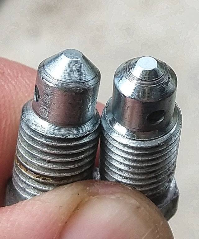 Bleeder on the right was gouged all to hell. Matter of fact internal hole was also dry when I pulled it. The left, the drivers side, the internal hole was wet. The factories were still smooth so what the heck. Bled the brakes and went for a drive. Felt nice, no fade.