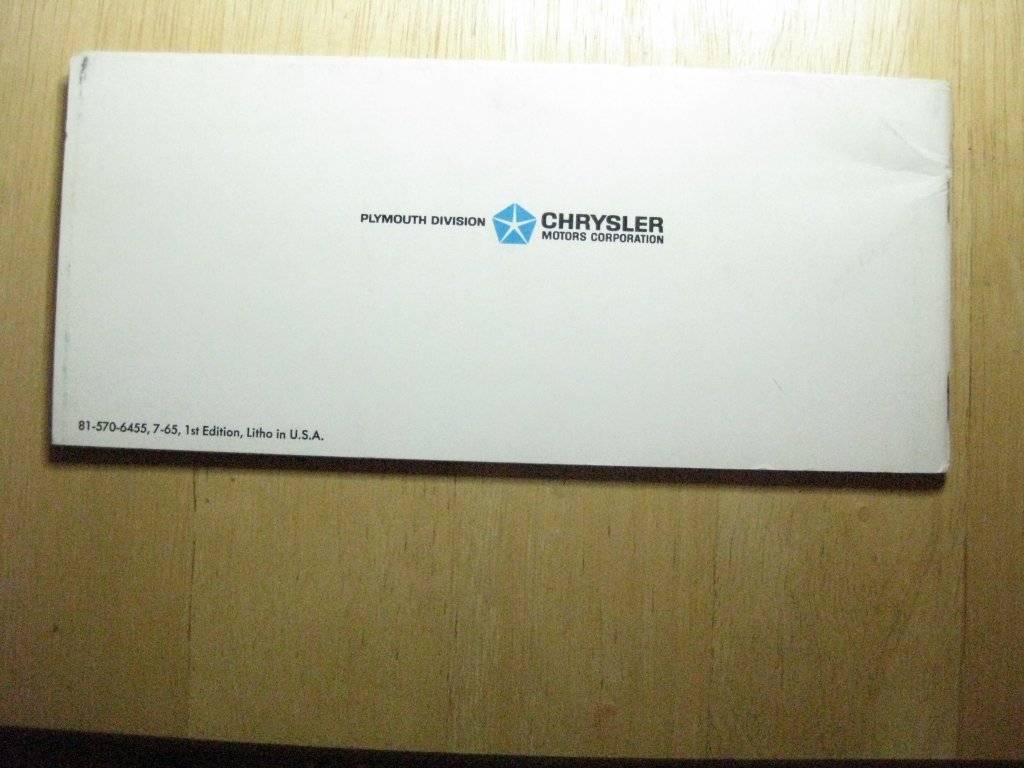 Original '66 Fury owner's manual in very good condition. $20.00 postpaid in the lower 48 States.