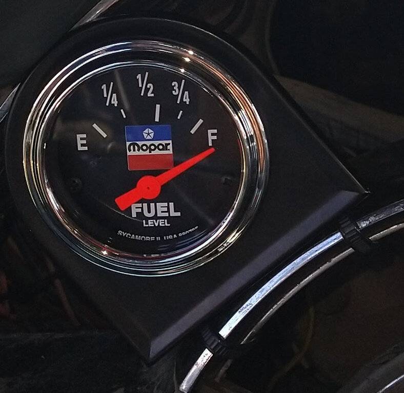I made sure the tank had only a few gallons in it this morning when I installed this, as shown, cabled tied down to the old instrument panel bezel by the shift indicator. It read just up to E then, when powered up. I filled the tank to slopping over full, then sent the Babushka this pic to assure her the near C-note we spent on the C Body (shipping and extended warranty added to the $65 price.) was WELL WORTH IT! So it is Fellow Moparians; Made in the U.S.A. by American Workers!