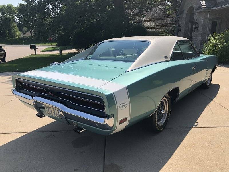 For sale is my 1969 Dodge Charger RT/SE. I'm getting older now and need to send it to a good home, preferably a younger person who has a love for these cars and will appreciate what they have. I've owned this car since April of 1991, and you can read/view my entire story in the website "For B Bodies Only" under the title of "My 1969 Dodge Charger RT/SE". I'd also strongly encourage you to go to YouTube and watch my detailed walkaround video entitled "1969 Dodge Charger RT/SE" from the poster named "6828oaklawn". The odometer shows 32,856 non original miles. If you need more photos of specific parts of the car, please let me know. This Charger is located in Minneapolis (55438) and can be viewed after April 1, 2023 due to the large amount of snow where its being stored (indoors, under a cover, of course!). It is also the current class 400 (68-70 B-body Dodge) champion from the June of 2022 Midwest Mopars National Car Show and Swap Meet. You'll have to bring your own trailer, as I cannot deliver it. This is an original RT/SE built at Dodge Main in Hamtramck MI in October of 1968. It was originally F3 light green metallic with a green interior and green vinyl roof stripe delete car. This IS NOT a "numbers matching" car. The original engine and transmission are long gone, but the car has its original 3.23 Sure Grip axle. The engine now in the car is a correct E series 1969 440 HP with the correct Carter AVS four barrel carb, stock intake and exhaust manifolds (powder coated), reproduction Group 27 AGM (absorptive glass mat) battery, electronic ignition conversion, Sanden rotary R-134a compressor conversion, and everything else stock under the hood. The transmission is a correct A-727-B Torqueflite automatic transmission from the 1969 model year. The engine and transmission were both professionally rebuilt. I have the dyno slip from the engine rebuild, which reflects 355 horsepower and 450 ftlbs. of torque. The car was entirely remanufactured and restored in 1994 - 1995, and is now Q4 Light Turquoise Metallic with a white interior, transverse tape stripe and vinyl roof. I have many photos of the restoration process if you want them, along with all the restoration documentation and paperwork, and a reproduction window sticker set reflecting the restored (not original) configuration. The car has its original VIN tag, fender tag and a clear Minnesota title. As you can see, this car has been restified - that is, restored but modified from its "as delivered" condition. Full details of the original and added options are on the link referred to above, but these are the options on the car right now (not all of which are original, as I mentioned). RT and SE packages with front anti-sway bar, 440 magnum HP V-8 engine with dual stock exhaust, console shifted Torqueflite three speed automatic transmission, Duncan Engineering Shift-R-Arm shifter with real walnut grips (made by a gunsmith) to replace the plastic stock grips (the original console shifter comes with the car), 3.23 Sure Grip rear axle, power steering, power front disc brakes (Kelsey-Hayes dual caliper), power windows, Chrysler AirTemp air conditioning, leather front and rear seating surfaces, light package, Tic-Toc Tach with electronic quartz movement that keeps perfect time, pedal dress up, wood grain steering wheel with several small cracks in it, hood mounted turn signals, wood grain instrument panel, left and right head restraints, six way seat, tinted glass all around (Chrysler OEM, not aftermarket), rear defogger, three speed wipers, locking gas cap, cruise control, AM 8-Track radio which works and includes a case of Chrysler factory demo (and some other) tapes in a vintage vinyl carry case, rear seat speaker, and American Racing Torq-Thrust wheels on Goodyear NASCAR yellow letter tires. The spare is a stock original Goodyear Speedway Redline F70/14 repro tire on a 14" stamped steel wheel that has never been used, accompanying a repro trunk mat and full correct jack set. This is the complete package with two sets of factory keys and ready to drive immediately. The sale also includes a box of spare parts, a poorly fitting but heavy car cover, and a set of full tinted date coded glass (less the windshield), and all the trophies (17) that it has won over the years if you want them. Here's what I think it could use: The tires have good tread, but given their age the new owner should consider replacing them. There is a small tranny leak somewhere, which should be to easy to repair, and the passenger door power window is a bit sticky. Otherwise, you should be good to go. The car doesn't handle that well (compared to my wife's new Mercedes) even with the RT package suspension components, but is a real beast when you open it up - so please drive carefully!