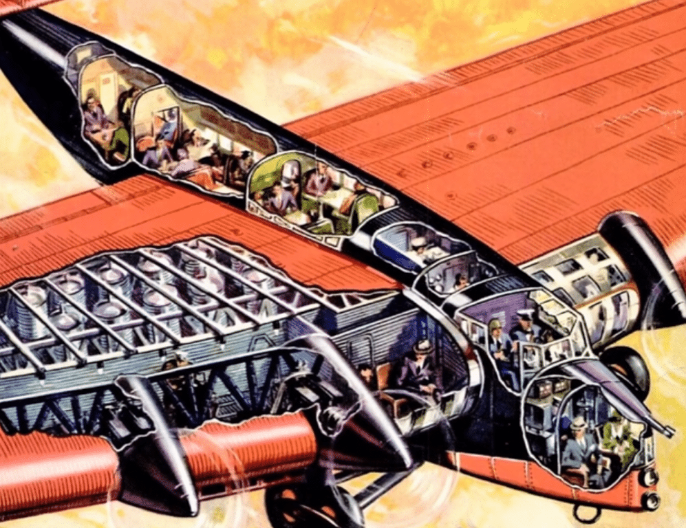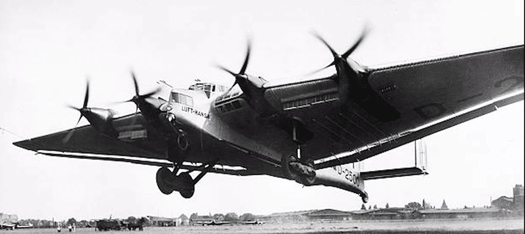 Junkers G38. Distant "granddaddy" of the flying wing. The wing as aerodynamic structure, plus passenger/cargo space. This was 1929.