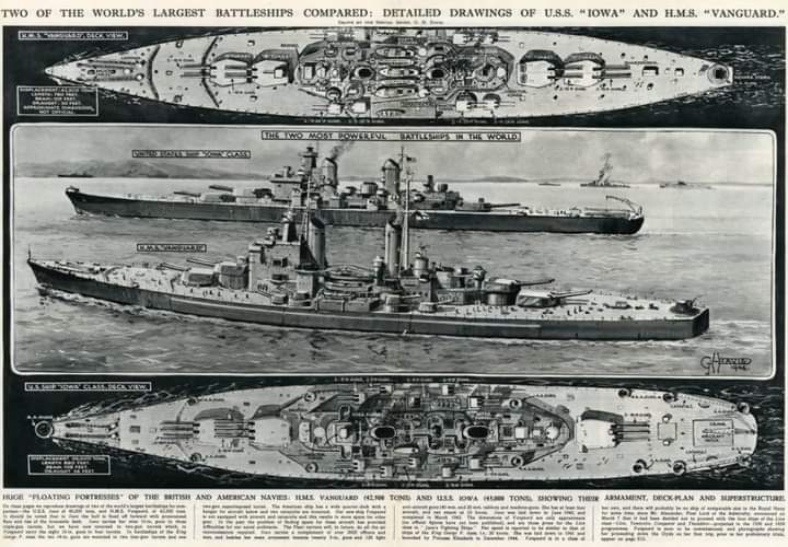 The two most powerful Battleships in the world Comparison By G H Davis Poster Print By Illustrated London News LtdMary Evans. HMS Vanguard (Vanguard class Battleship) USS Iowa (Iowa class fast Battleship).