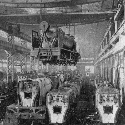 I remembered this picture from a couple dozen years ago .. but not the source. Turns out its in "The Wonderbook of Engineering Wonders" ... probably other books similarly themed. Pic tis the locomotive "erector shop" someplace, circa 1920's-30's.